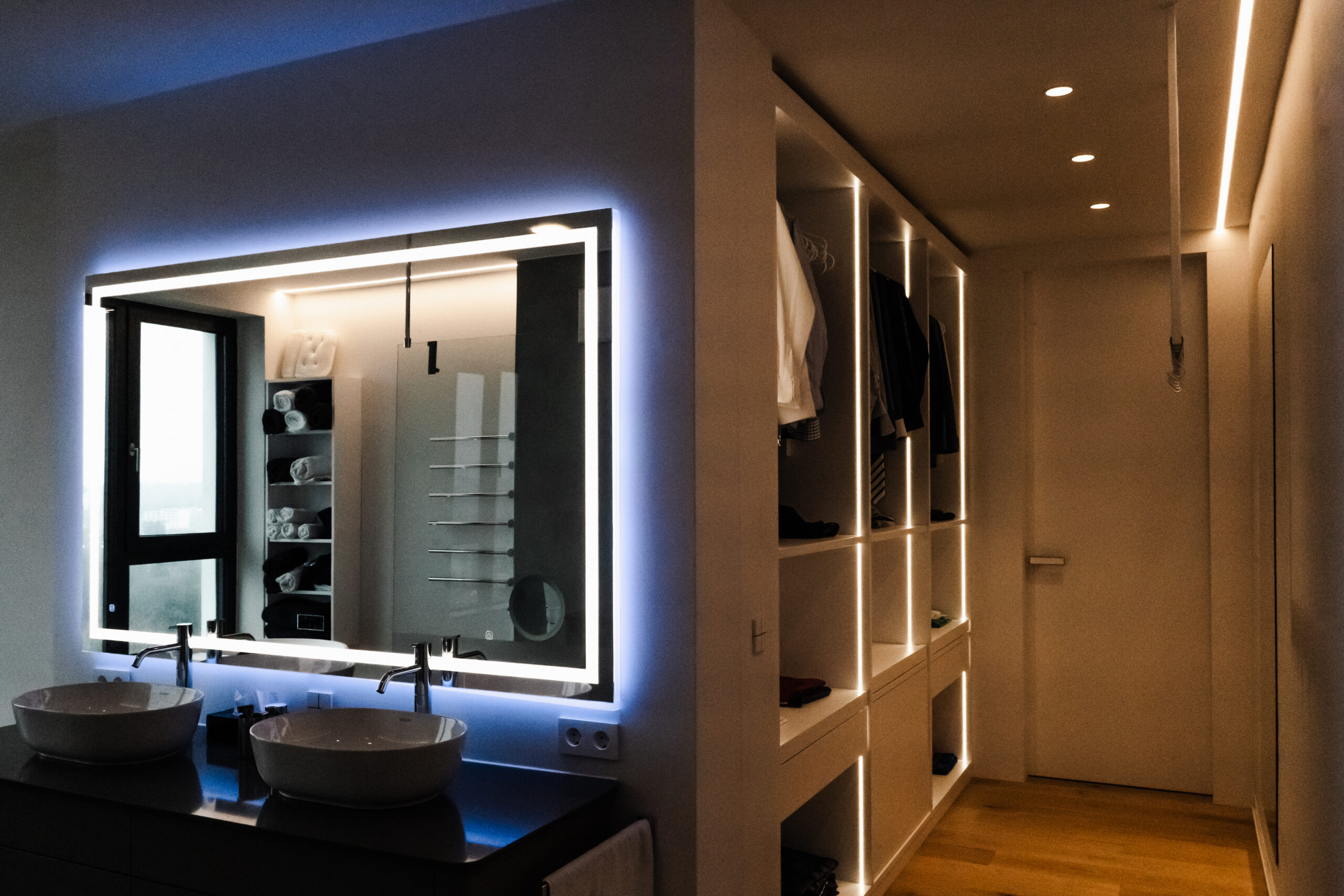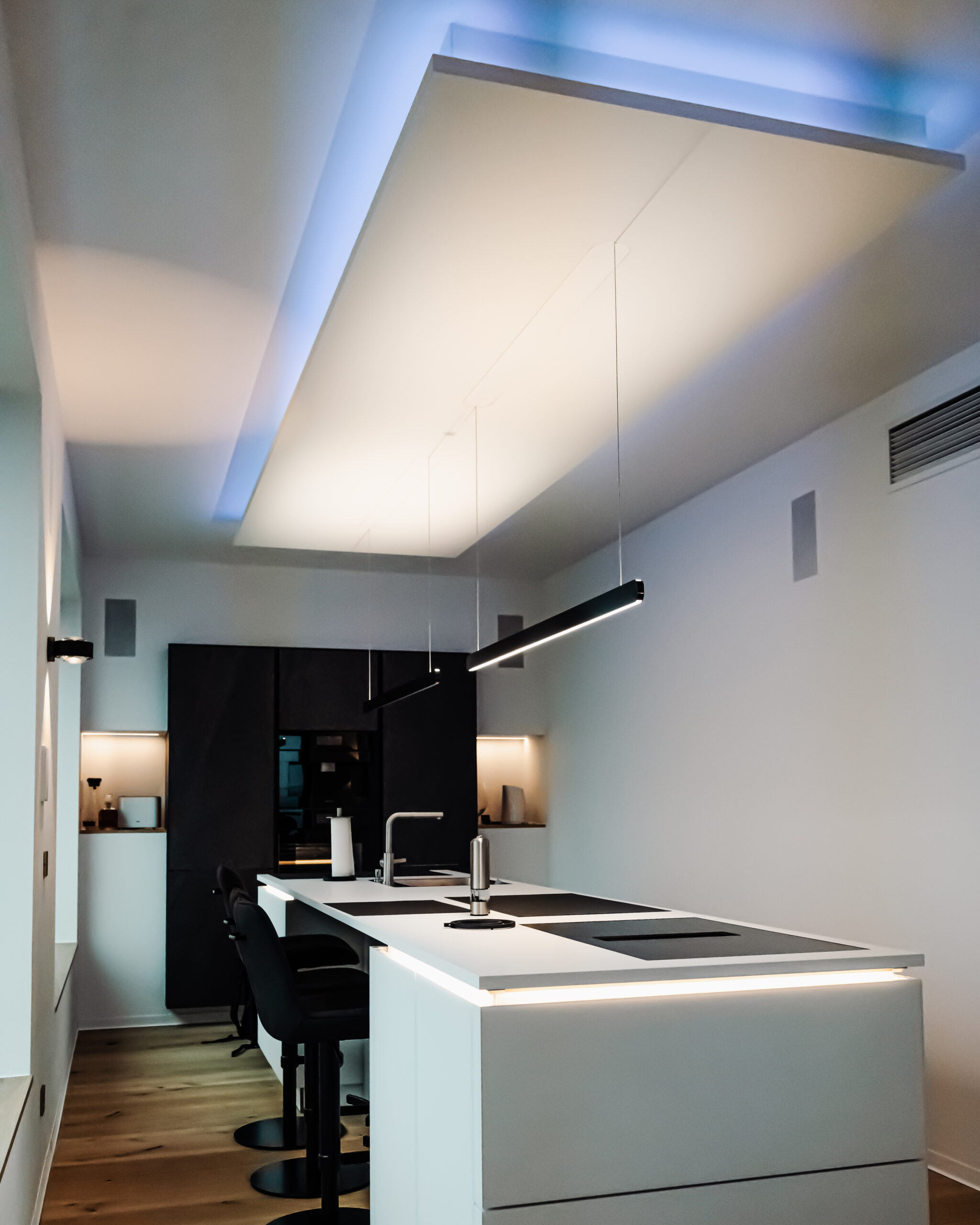 Ein herausragendes Beispiel für die nahtlose Integration anspruchsvoller Unterhaltungselektronik in eine moderne Designwelt. Hochwertige Medien- und IT-Technik wurde vollumfänglich in den Wohnraum eingebunden – ohne Kompromisse bei Komfort, Ästhetik oder Bedienbarkeit.