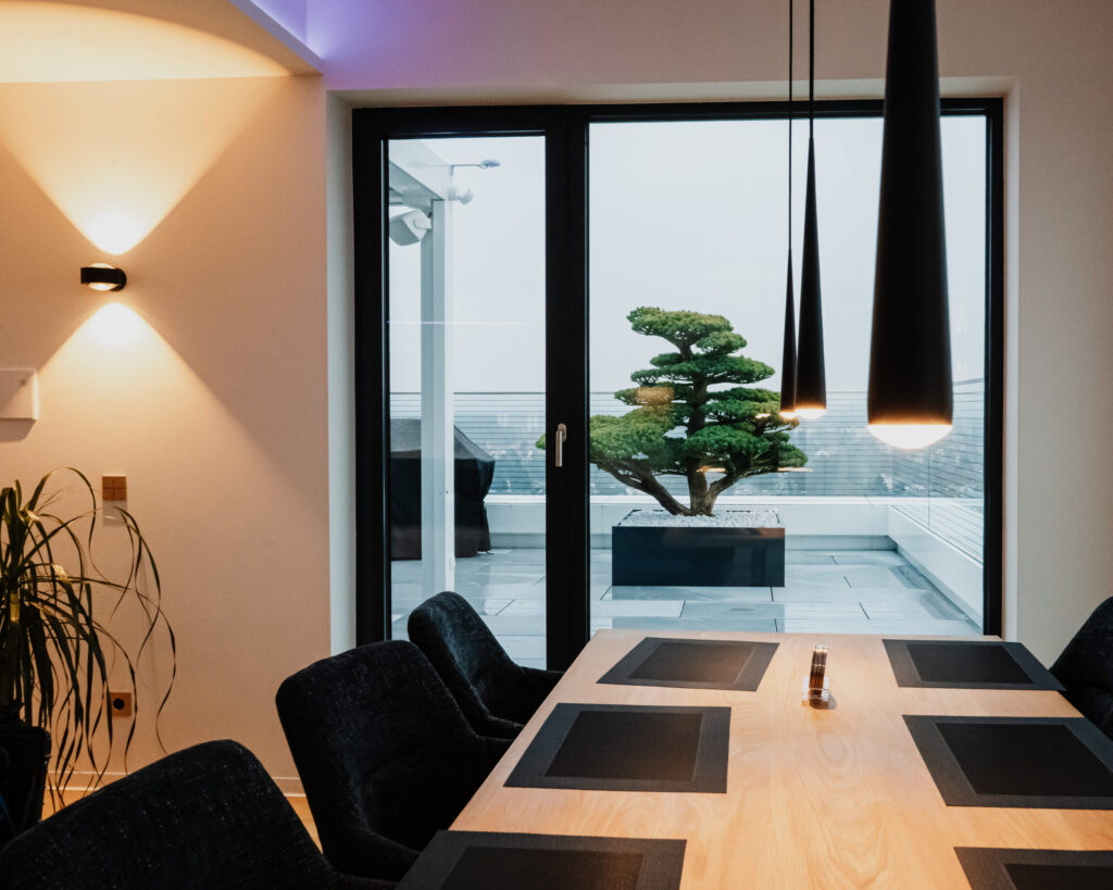 In diesem Penthouse über den Dächern Nürnbergs wurde gemeinsam mit der Elektrofirma Smart by Taubert der Traum eines luxuriösen Wohnraums realisiert, der modernste Technik mit dem Design von morgen verbindet.